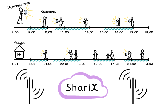 Дочерние сервисы определяют суть sharing-услуги: формат, позиционирование, стандарты и критерии соответствия им, а также реализуют дополнительный функционал для взаимодействия с оборудованием или иными системами.